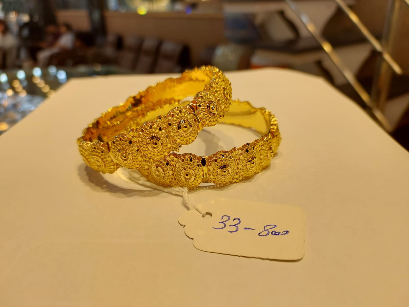 "Statement gold bangles with intricate beaded detailing – crafted for timeless bridal beauty and festive charm."